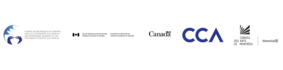 Partners: Chaire de recherche du Canada sur la citoyenneté culturelle des personnes sourdes et les pratiques d’équité culturelle, UQAM, Conseil des arts de Montréal (CAM), Social Sciences and Humanities Research Council (SSHRC), Canadian Centre for Architecture (CCA), Centre for Sensory Studies, Concordia University